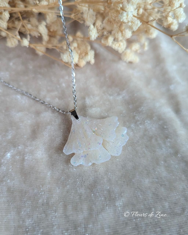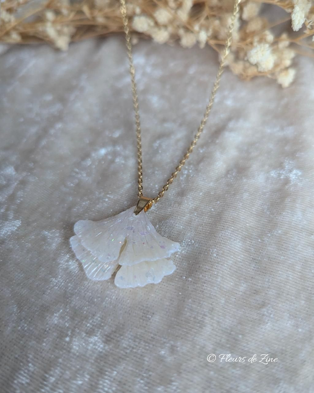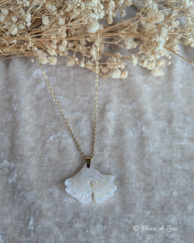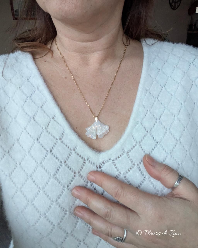 Collier ginkgo nacré pailletté