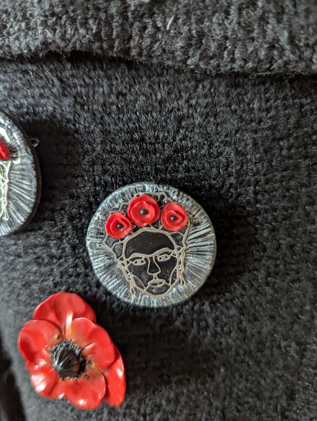 -broches de 3 cm de diamètre environ, sculptées dans l’argile polymère