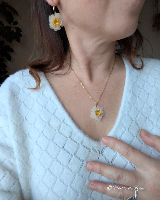 Le cœur est subtilement rehaussé de pistils en métal ; ajoutant une touche de glamour discret et étincelant.