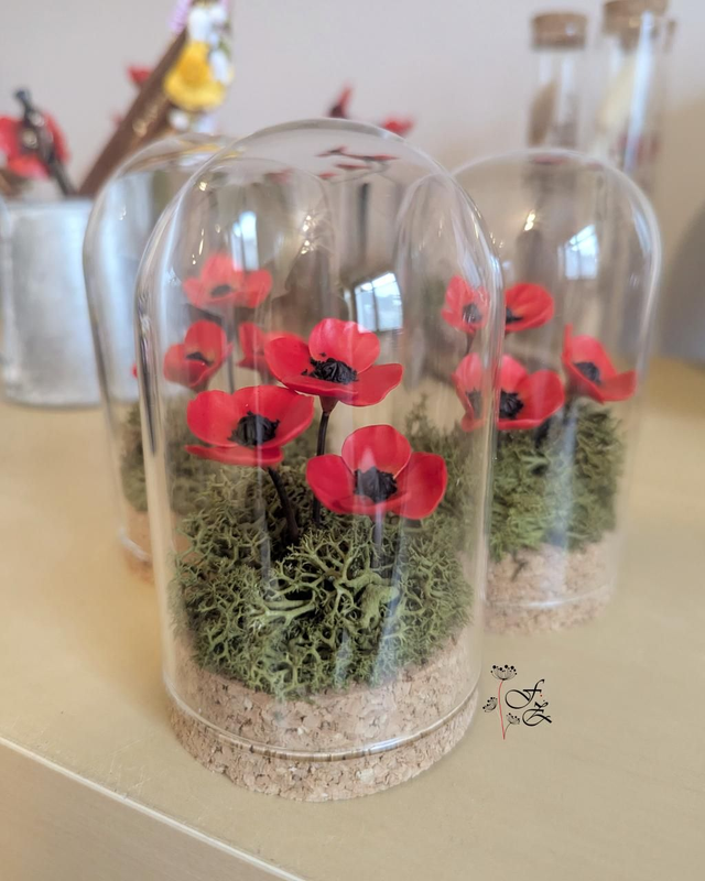 Fleurs en forme de coquelicots faites main dans l’atelier de Fleurs de Zine.