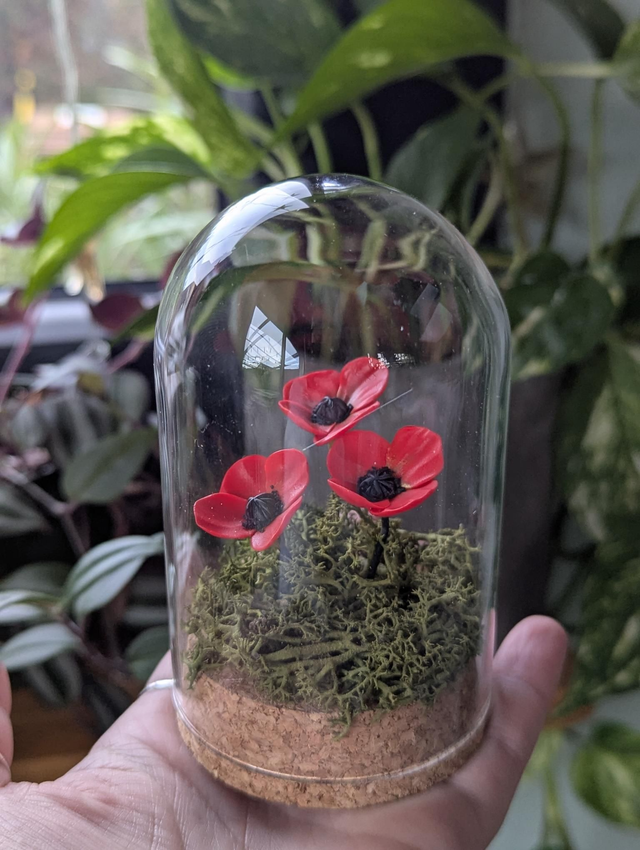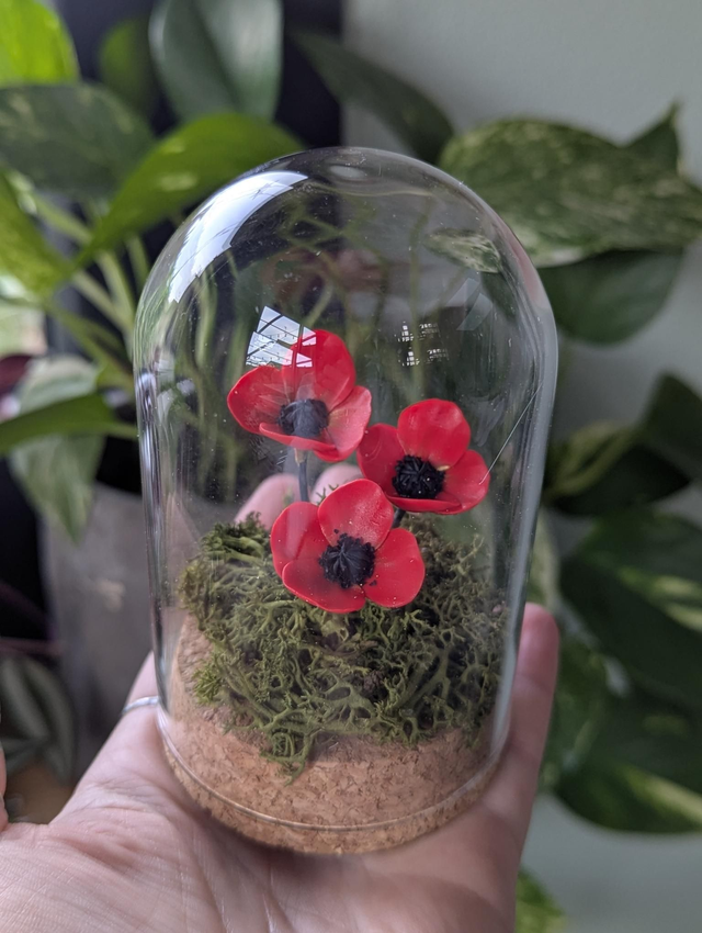 Petite cloche en verre et coquelicots